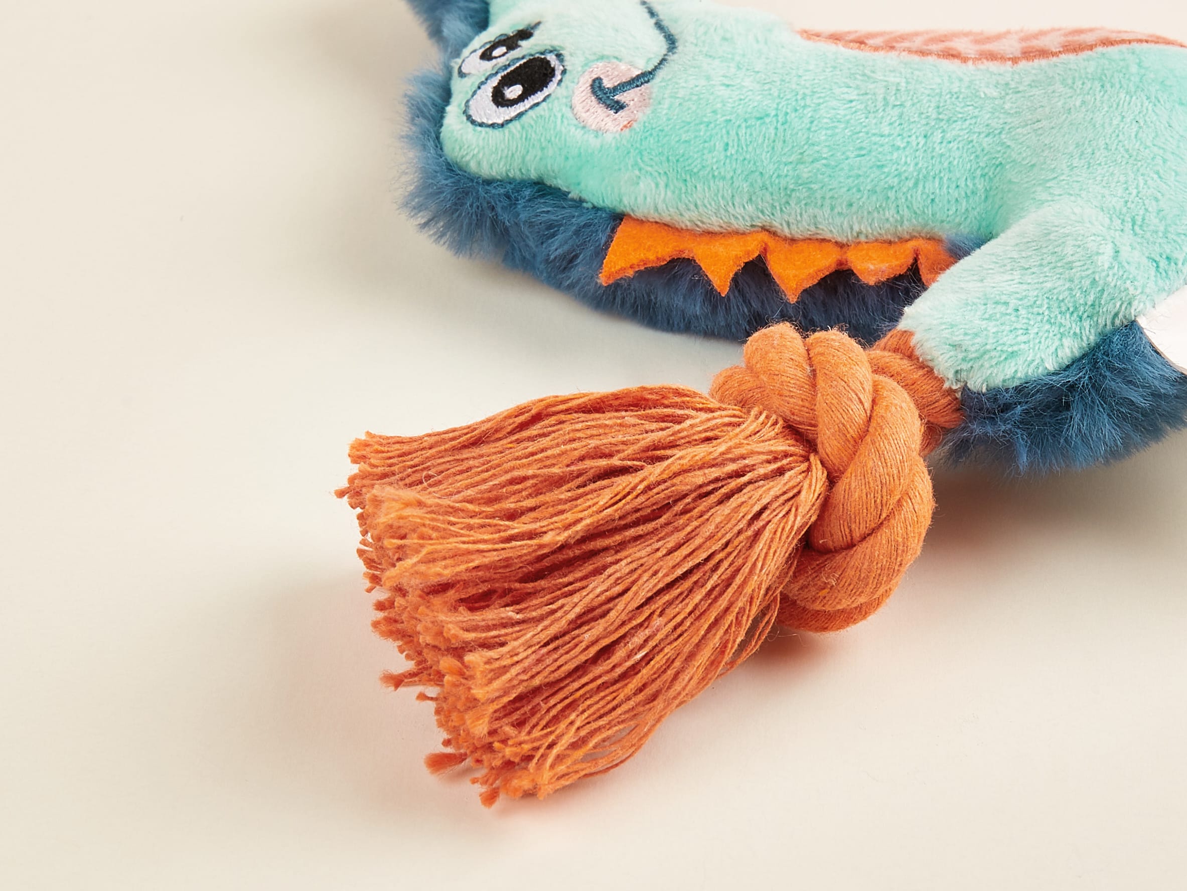 Un juguete de felpa con cuerda que combina suavidad y resistencia, ideal para juegos de tirar, morder y sacudir. Perfecto para mantener a tu perro activo y feliz mientras fortalece su mandíbula.