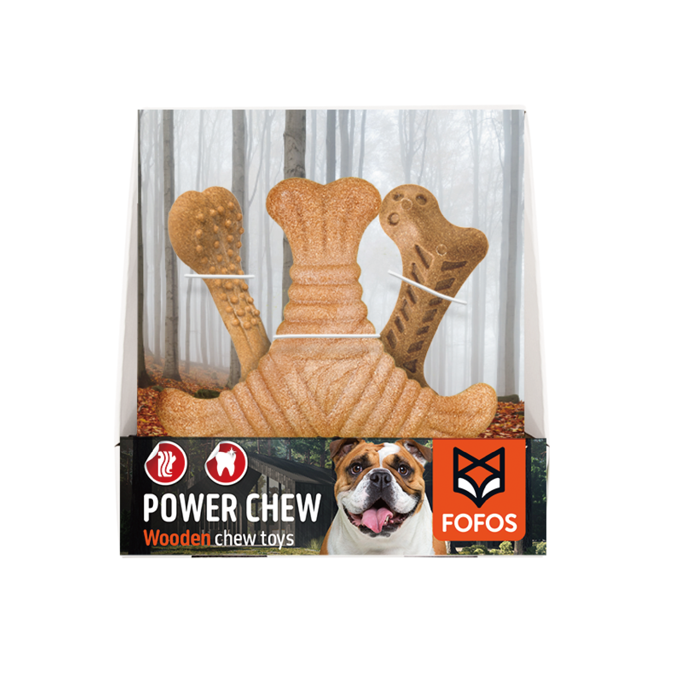 Un set de mordedores hechos con fibra de madera, diseñados para peludos con mandíbulas potentes. Resistentes, seguros y con textura única que satisface el instinto de morder mientras ayuda a mantener dientes y encías sanos.